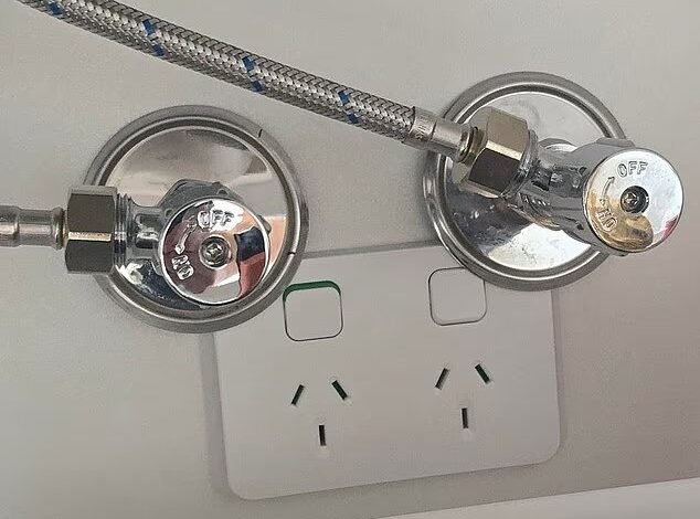 The Australian man recently moved into the new-build property and found a power point installed directly beneath the plumbing inside the master bedroom – with water taps positioned directly above the electrical socket.